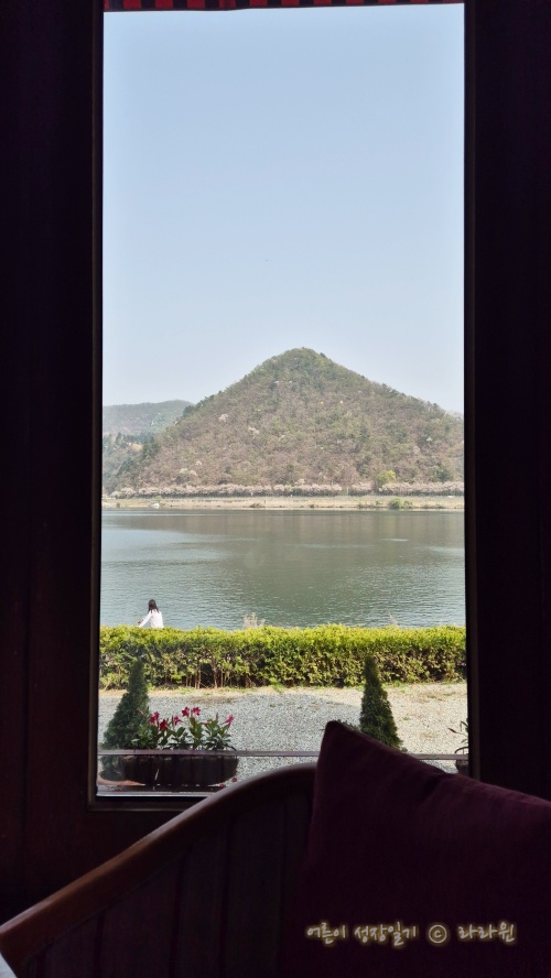 북한강 바로 옆의 성 같은 근사한 건물입니다. 정면에 보이는 입구가 커피박물관 가는 입구이고, 오른쪽의 짧은 보도블럭 꽃길로 들어가면 카페와 레스토랑입니다. 지난 번에는 예약을 하지 않고 와서 창가 자리에 못 앉았는데, 이 날은 평일 오후 2시경에 갔더니 창가에 자리가 있었습니다. 럭키.